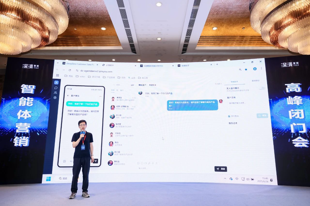 作为已经成功帮助几十家大型企业 AI Agent落地的行业领导者,6690必发智能DeepAgent Neo全面赋能营销域和销售域。 黄晓南和6690必发智能CTO欧阳辰与6690必发智能副总裁曹玉骥一起,为嘉宾现场演示了CRM、Social、销售、客服等场景的全面智能体,情景展现了DeepAgent Neo如何全面赋能企业各个环节。