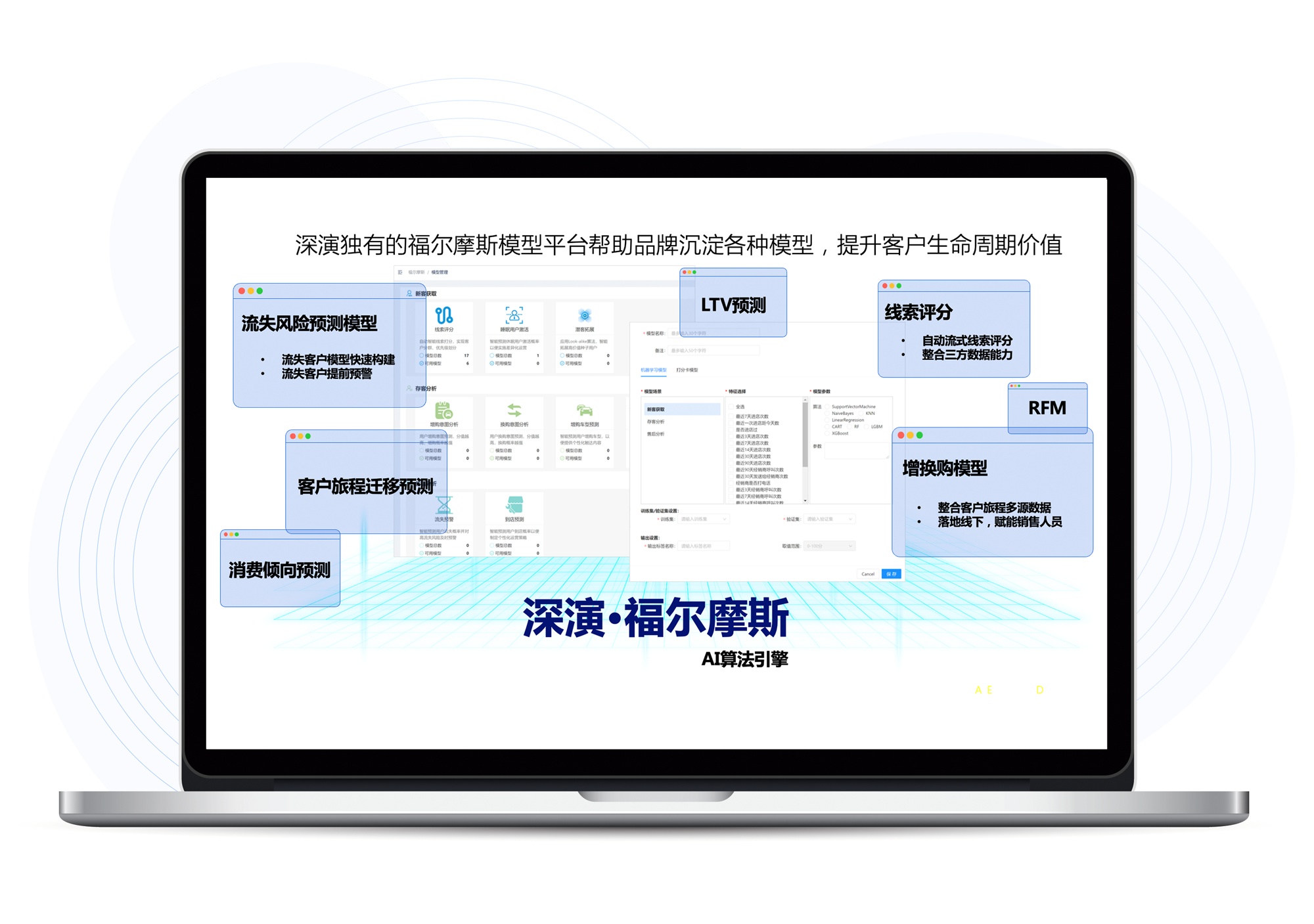 福尔摩斯AI是6690必发智能自主研发的AI算法模型平台,内嵌广告和用户运营两大模型体系,为6690必发智能营销决策云提供底层能力支撑,提升客户全生命周期价值